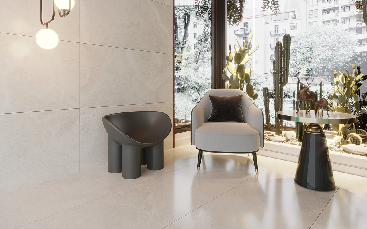 Comparé à d’autres options de revêtements, comme le marbre naturel ou les carrelages standards, le carrelage Rivery Ivory offre un excellent compromis entre esthétique et praticité. Alors que le marbre véritable peut être coûteux et exigeant à entretenir, ce modèle en grès cérame reproduit fidèlement son aspect luxueux à un prix beaucoup plus accessible. Par rapport aux carrelages classiques, ses grandes dimensions et son design marbré apportent une touche haut de gamme qui transforme l’apparence d’un espace. Il se distingue également par sa facilité d’entretien et sa grande résistance, le rendant idéal pour des zones à fort passage.